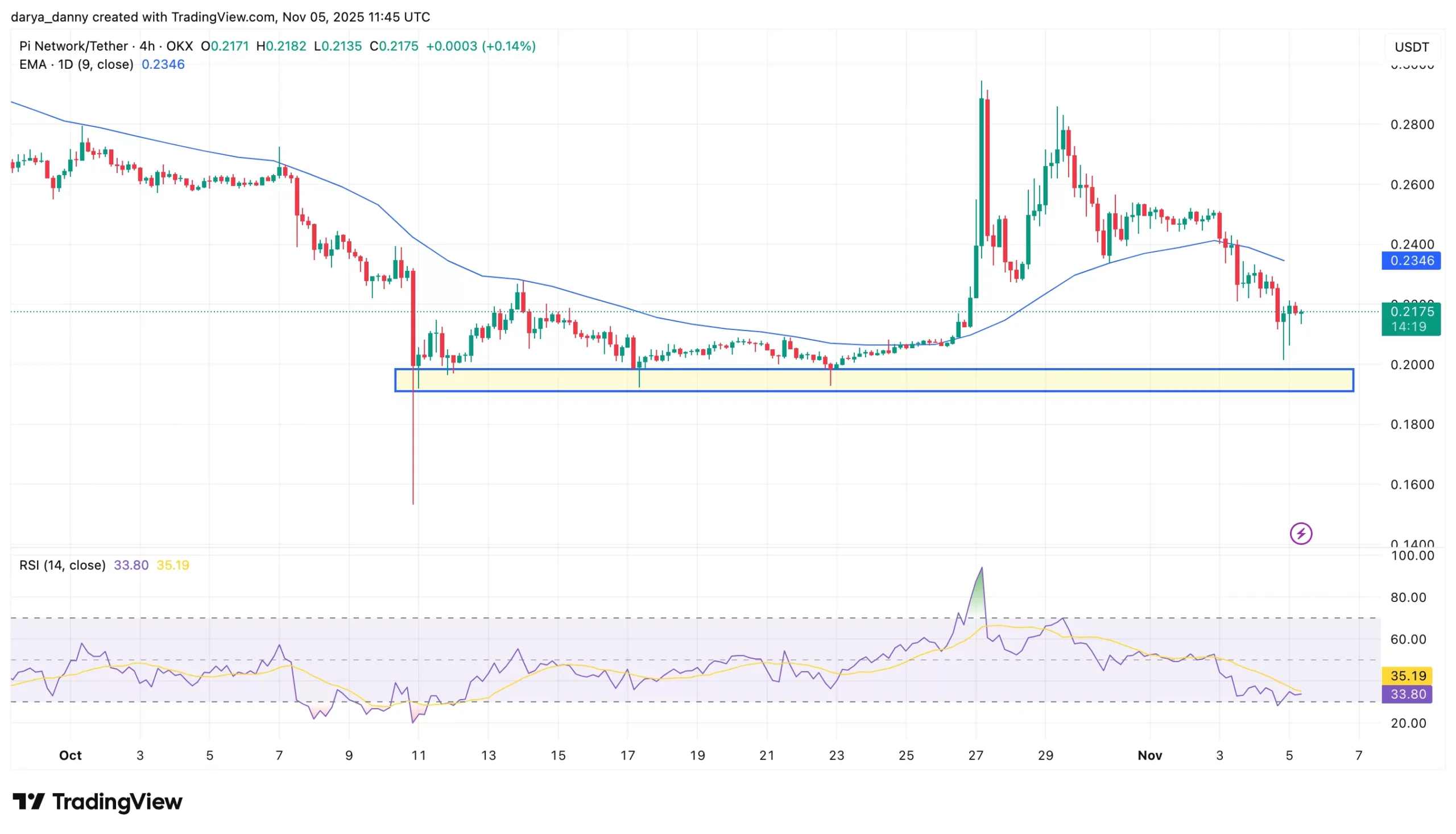 Meanwhile, Pi Network price has retraced back to the $0.20-$0.22 level following its recent rally to $0.30. The token appears to be bouncing off the $0.20 support, a level where it previously consolidated after the October 10 flash crash.