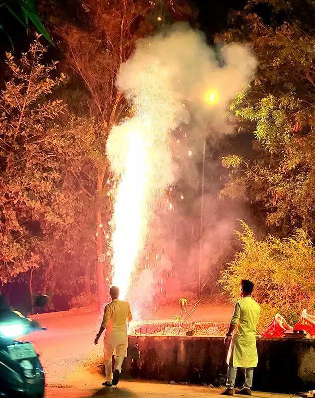 Pune: On the main day of Diwali celebrations on Tuesday, the city’s air quality remained in the moderate category in the evening with an AQI 135 at 7pm, slightly better than Monday’s AQI 170, according to IITM’s air quality early warning and decision support system.However, scientists have warned that air quality is expected to deteriorate to poor levels by Wednesday morning as particulate matter from firecrackers accumulates under cooler and calmer atmospheric conditions.While parts of the city saw a light drizzle and cloudy skies on Tuesday evening, the main Indian Meteorological Department (IMD) stations recorded no significant rainfall. Meteorologists said the faint drizzle was too weak to wash out airborne pollutants. It lacked the intensity and droplet volume necessary to pull fine particulate matter to the ground. Instead, the increased humidity worsened pollution by making tiny particles heavier and stickier, causing them to clump together and linger closer to the surface.An IITM scientist said, “High moisture traps pollutants near ground level, preventing dispersion. Even a slight drizzle without sustained rain can actually make the air feel heavier and hazier, especially when combined with smoke from firecrackers.”Meanwhile, doctors have reported a rise in cases of tinnitus and temporary hearing loss linked to exposure to loud firecrackers. Dr Seemab Shaikh, an ENT surgeon, told TOI: “Sudden bursts of high-intensity sound are as harmful — or even more harmful — than prolonged exposure over several hours. Extremely loud explosions can cause serious damage to the hearing nerve.”He said, “In the last few days, I’ve seen teens reporting tinnitus or temporary hearing loss in one ear after being exposed to loud firecrackers such as ‘sutli’ bombs. These high-intensity bursts can cause hearing damage within seconds.”Experts said sudden loud sounds, like firecracker explosions or ‘bomb’ crackers, can cause acoustic trauma — a form of inner ear injury where powerful sound waves damage the delicate hair cells inside the cochlea. These hair cells are responsible for converting sound vibrations into electrical signals for the brain. Once damaged, they do not regenerate, leading to temporary or even permanent hearing loss. Even a single close-range exposure to a loud firecracker can trigger tinnitus (ringing in the ears) or partial deafness.