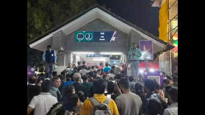 PUNE: As many as 5.9 lakh commuters travelled in Metro trains on the last day of Ganeshotsav as the services witnessed a heavy rush throughout the day on Saturday until late at night.The Maha Metro operated the trains uninterrupted for 41 hours starting from Saturday at 6am.The immersion day ridership also emerged as the highest single-day ridership so far since the inception of Metro services.The maximum footfall of over 65,000 was recorded at Mandai station, followed by Deccan Gymkhana, from where 64,000 commuters travelled.Passengers at Mandai and Deccan Gymkhana stations said they faced delays while entering and exiting the stations due to the huge rush. Metro authorities, however, claimed that additional manpower was deployed to handle the crowd. No untoward incident was reported at the stations.Dinesh Lonkar, who travelled with his friends on the Metro on immersion day, said the trains were extremely crowded despite the high frequency.”We travelled from Vanaz to PMC station, and we hardly found a space to sit. The Metro authorities should continue to operate with increased frequency,” he said.According to Maha Metro, as many as866 trips were operated during the span of 24 hours.“The frequency was increased on some sections, such as Civil Court to Swargate, to manage the crowd. The frequency was also increased on the Civil Court to Vanaz section during peak hours. We had appealed to people tomake use of online payment modes to purchase the journey tickets. In the last five days of Ganeshotsav, the Metro services consistently recorded over 3 lakh daily ridership, and on the last day, it increased to 6 lakh,” said a Maha Metro official.Shravan Hardikar, MD, Maha Metro, said a significant number of commuters utilised Metro services during Ganeshotsav.“The Metro’s daily footfall has also increased in the last few months. Maha Metro is looking forward to enhancing the Metro services to benefit people,” he said.Last weekend, over 6.9 lakh commuters had travelled by Metro, with the Mandai and PMC stations recording the maximum rush. As many as 3.3 lakh commuters had used the service on Sunday and 3.6 lakh on Saturday during Ganeshotsav.