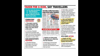 Pune: The new cab fares rolled out by the Indian Gig Workers’ Front have sparked commuter discontent, plunging many into a whirlwind of confusion and sticker shock. The steep charges have drawn comparisons to extortion, resulting in fiery exchanges between drivers and passengers.The Indian Gig Workers’ Front, a cab association, rolled out the revised fares on Tuesday, aligning them with the state’s yet-to-be-unveiled cab aggregator policy. The association, led by president Keshav Kshirsagar, had launched onlymeter.in, a platform for fare calculation, in May. Kshirsagar said they decided to implement the new rates independently because of delays in the policy’s formal rollout.Kondhwa resident Akash Shinde said he was charged Rs 430 for a cab ride from Pune airport to his residence on Wednesday night, despite the meter showing Rs 380. “After three drivers refused, one finally agreed but insisted the fare had been revised. I tried to verify the new rates, but he was firm on his demand, leaving me no choice but to pay,” Shinde told TOI.Vikram Pant from Koregaon Park had a similar experience. “I was asked to pay Rs 210 for a 7-km ride to Ghole Road, a sharp increase from the Rs 170 I paid just a month ago. The fare hike makes no sense, and drivers are becoming aggressive when questioned,” he said.Shreyas Apte, a resident of Kothrud, booked a cab to MG Road, about 9km away, on Thursday morning. “I opted for a sedan, and based on the revised fare structure, the fare should have been around Rs 280, compared to Rs 310 shown in the app and Rs 212 under the old meter rates. The driver, however, demanded Rs 370 and refused to negotiate. When I asked him to cancel the ride, he insisted I do it instead. Eventually, he agreed to drop me for Rs 330, and I accepted as I was running late,” Apte said.Sinhagad Road resident Kaustav Lal said drivers were arbitrarily charging passengers based on their own calculations, and no authority seemed to be taking action. “Is the RTO or police even aware of these incidents? This is blatant overcharging,” he said.Cab association president Kshirsagar said cab drivers were told to calculate fares correctly, and updates were being made to the website (onlymeter.in) to reflect the new fare structure. “For trips under 3km, the minimum fare will apply depending on the vehicle type. Beyond that, the fare per kilometre will be charged as per the revised rates. We’ve told the drivers to ensure accurate billing, and the confusion should clear up soon,” he added.Attempts to contact senior Pune RTO officials failed. An official, however, said people with grievances could raise complaints. “We have a WhatsApp number (8275330101), and people can raise their grievances using it. After investigation, required action will be taken against the cab driver concerned. We are already taking action against errant auto drivers, and more than 300 have faced action so far,” the official added.GRAPHICThe Indian Gig Workers’ Front introduced revised cab fares on Tuesday without the formal rollout of govt policyCOMMUTERS’ GRIEVANCESPassengers reported being overcharged, with some drivers demanding higher fares than shown on the meterA section of people expressed frustration and anger over the steep charges, with some drivers refusing to negotiate or cancel ridesCAB ASSOCIATION’S RESPONSEPresident Keshav Kshirsagar said drivers were told to calculate fares correctlyUpdates are being made to onlymeter.in to reflect the new fare structureKshirsagar assured that accurate billing would be ensured, and confusion would clear up soonSince May, a growing number of cab drivers affiliated with aggregators like Uber, Ola and Rapido started following the rates on the web portalUber and Rapido also declared their shift to a ‘Software-as-a-Service (SaaS)’ modelUnder this system, while the fare for a destination would still appear on their apps, the final fare would be negotiated directly between the passenger and the driverRTO VOWS ACTIONPeople can raise grievances on a WhatsApp number (8275330101)Action will be taken against errant cab drivers after investigation