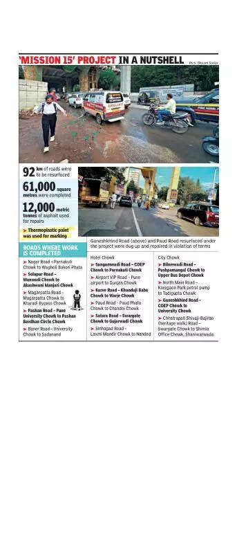 Pune: The defect liability period of contracts for key roads resurfaced by the Pune Municipal Corporation has been abruptly cut short because of a lack of coordination between various civic departments, activists and residents have claimed.PMC in 2023 announced a special project ‘Mission 15′ under which repair works on some of the busiest roads within its limits were taken up. The objective was to provide motorists a smooth ride and reduce traffic congestion.As per the agreement, the contractors were supposed to maintain the roads under the defect liability period (DLP) for three years during which they would not be dug up. However, within a year and a half, PMC gave permissions for excavation because of various works, activists said. They further said the vested interests of civic officials and contractors led to mismanagement and miscommunication that caused a loss of tax payers’ money.Vivek Velankar of Sajag Nagrik Manch said the quality of roads and repairs is poor. “The administration is not taking the contractors to task. The Indian Road Congress norms are not followed in repairs. Stringent action is a must against those who are flouting the rules,” he said.Road digging is rampant in several areas even during the rainy season, said Kothrud resident S S Kulkarni. “These dug-up roads are not only causing damage to vehicles but also leading to various other problems. Health issues such as neck and back injuries go up,” Samir Paranjape from Sinhagad Road said.Aniruddha Pawaskar, head of PMC’s road department, told TOI that permissions were given for various reasons, including for carrying out emergency works.Along with private companies, govt or semi-govt agencies like the electricity department and pipe gas suppliers dig up roads for utility services. Some civic departments also lay water and drainage pipelines. According to PMC data, Rs 12,000 per metre is charged from private firms for laying underground cables, pipes, and restoration of roads.