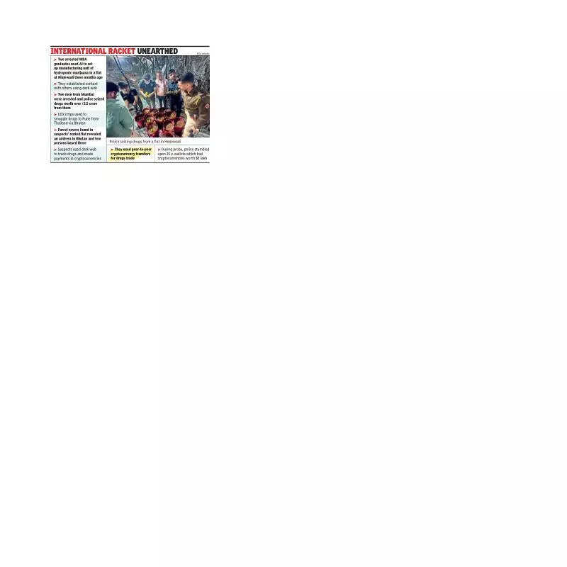 Pune: The city police’s ongoing investigation into the illegal production and sale of drugs, including hydroponic weed, led to the identification of 25 crypto wallets containing total $5 lakh (estimated Rs4.5 crore) generated from the trade in Pune and other parts of Maharashtra. “These crypto wallets were found operational on the dark web and from Scandinavian countries,” deputy commissioner of police Somay Munde said.Police have now sought the help of the Financial Intelligence Unit of India to ascertain how the money was converted into digital currencies and which bank accounts were used to do so. “This probe will explore the financial aspect of the entire crime and how the money was rotated by the suspects,” Munde said. “We will try to freeze these wallets,” he added.“We have also decided to seek assistance from the law enforcement agencies in Bhutan and Thailand to trace two suspects based in these two countries from where the raw material for producing drugs was supplied,” Munde said.TOI on Dec 18 reported the arrest of an engineering student, two MBA graduates, and two men from Mumbai, along with the seizure of drugs worth Rs3.5 crore from them by police. This was after police busted an illegal drug processing unit, which was being operated from a flat in Hinjewadi, to produce hydroponic marijuana.The two MBA graduates left their jobs and started the illegal drug production unit, taking help from Artificial Intelligence. After busting the racket, police said that the suspects extensively used cryptocurrencies, the dark web, and social media sites to manufacture and sell the drugs in the city. Police also arrested two men from Kurla and Ghatkopar in Mumbai in connection with the racket.Munde said, “We have identified the two Bhutan-based persons as they courier drugs to Pune in the form of LED strips (lights). The bulbs of these strips contained drugs. We seized the courier packs and took down the address of the two senders.” “The drugs landed in Bhutan from Thailand, and we have also identified the Thailand-based man,” he said. According to police, the arrested persons used cryptocurrencies to purchase and sell the drugs.