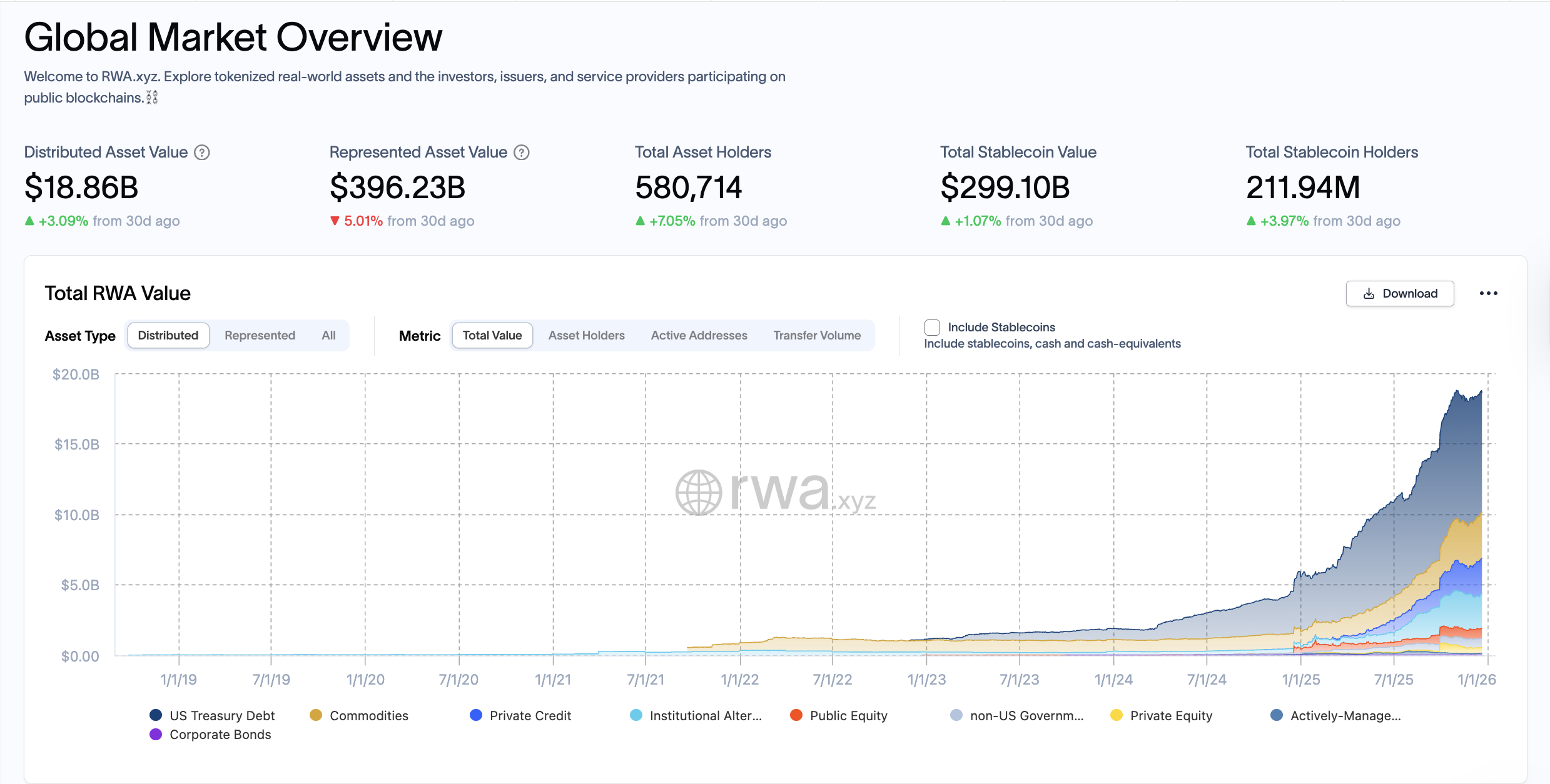 The market capitalization of the RWA sector, excluding stablecoins, is nearly $19 billion at the time of this writing. Source: RWA.XYZ
