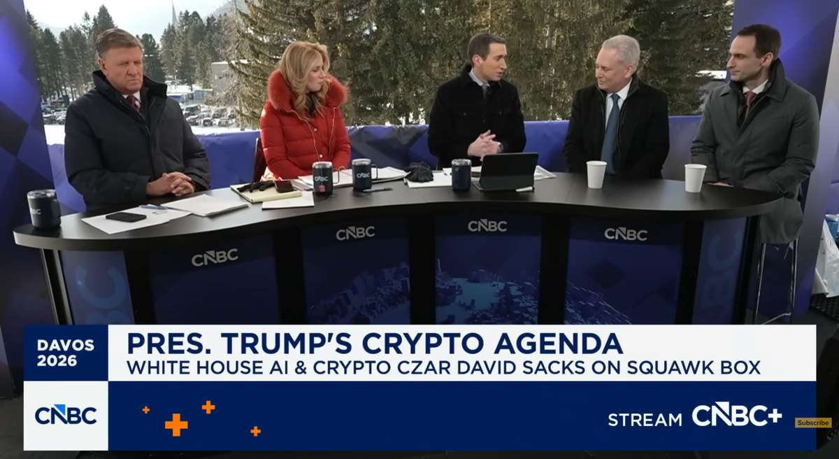 The comments came during an interview on CNBC’s Squawk Box on Wednesday at the World Economic Forum (WEF) in Davos, Switzerland, where Sacks was asked about the negotiations around the proposed CLARITY Act, a market structure bill that has stalled amid debate over whether stablecoin issuers should be permitted to offer yield.