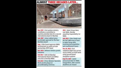 Mumbai: Two months ago when the state govt announced Sept 30 as the latest deadline for the Navi Mumbai airport’s inauguration, it was assumed to be another tentative date as in the past decade the airport had missed many deadlines, including three in the last twelve months. On Thursday though, when the Airports Authority of India (AAI) extended its notice on the Navi Mumbai runway closure to only Sept 20, the month-end inauguration now appears to be certain. Domestic flights, a few to begin with, are expected to begin a month later around Oct-end or early Nov, said sources.Since May, AAI has been extending the closure period of Navi Mumbai runway by issuing NOTAM (notice to airmen). The latest NOTAM states the Navi Mumbai runway will not be available for flight operations till 11.59 pm on Sept 20. In March when AAI published Navi Mumbai airport’s Aeronautical Information Publication (AIP) it said the runway will be available for flight operations from mid-May. But in mid-May, AAI issued a NOTAM stating that the Navi Mumbai runway will not be available till Aug 7. Then in Aug, it extended the runway closure to Sept 3. “Had the Sept 30 inauguration been postponed, the NOTAM issued on Thursday would have announced that the runway is not available till say, Oct 3,” said an aviation source. NOTAM keeps pilots updated about the non-functional status of airport and its runway. In case of a forced landing or an emergency then, the pilots concerned would know that the runway strip at Navi Mumbai hasn’t been commissioned and so it doesn’t have the facilities available at other operational airports.Another source said that preparations are underway to receive the prime minister at the Navi Mumbai airport site on Sept 30. On Dec 29 last year, Adani Airport Holdings Ltd (AAHL) had announced April 17 as the date of inauguration.