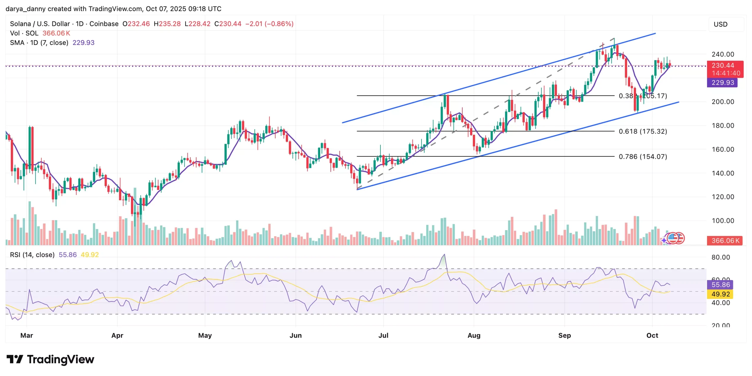Looking ahead, Solana price is likely targeting the top of the ascending channel, which currently aligns with the $250–$255 range. This upper boundary has previously acted as dynamic resistance throughout the trend and could serve as a near-term target if momentum continues to build.