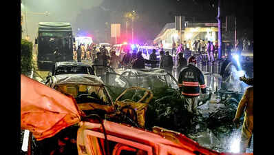New Delhi: A deafening noise, car parts tossed into the air, and several bodies strewn across — eyewitnesses who found themselves near the spot of Monday evening’s blast outside Red Fort metro station recalled scenes of complete chaos, destruction and trauma.The force of the explosion was immense, felt far and wide. The window at Gate No. 1 metro station — on the opposite side of the road — was completely shattered. Within seconds, debris was scattered everywhere, and fear and panic set in.“I heard the voice 300 metres away, behind Lala Lajpat Rai Market. We came out and saw people running,” said Vinod Kumar (40), a coolie in Bhagirath Palace. “I have never heard such a loud blast ever in my life. I fell three times due to the explosion. It felt as if we were all going to die…,” recalled a local shopkeeper.At the site, slippers and shoes were seen lying in several places, left by the hundreds who ran for their lives — rushing off in different directions and into the closest lane they could find. Some vehicles passing by near Gate No. 4 metro station were left abandoned mid-road by drivers who feared another explosion.Jamna, a 50-year-old woman, stood crying near the barricade, frantically looking for her son Arjun. Disoriented and trembling, she said, “He sells flowers in a nearby market… I can’t find him now…”Police cordoned off the area and set up barricades. Shopkeepers, who had moments earlier been going about their day, were seen searching for their vehicles or trying to reach their loved ones to make sure they were safe.Akshay (41), a business man whose electronics shop was just 200 metres away, said, “No one could figure out what happened. Several cars were damaged. It felt like the ground was shaking. People said it was a CNG blast, but it felt like something else…”Amid the chaos, there were also good Samaritans like Chander Prakash and his friend Abhijeet Singh, who sprang into action to help the injured. “We were near the temple when we heard two loud blasts,” Prakash recalled, his voice shaking. “Suddenly, there was mayhem — people screaming, fireballs everywhere and debris flying in all directions. We rushed to assist the injured, lifting them and helping carry them into ambulances.“Jai (49), a watch shop owner travelling from Lala Lajpat Rai Market towards Kashmere Gate, had a close shave as he was just 10 metres from the spot. “I parked my scooty some distance away due to the rush and took an e-rickshaw with two others. Within a minute, I heard a noise so loud my ears got blocked. Then I saw car parts flying and scattered body parts,” Jai said.Maujib (24), who was at a nearby traffic signal, recalled the panic: “There was a huge crowd, and the moment we heard a loud noise, everyone just scrambled and ran for their lives.”Hours later, the usually crowded area with barely any space to walk stood eerily empty under the flashing lights of police and emergency teams.With inputs from Kushagra Singh