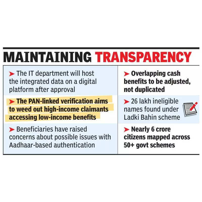 Pune: The state information technology department has proposed a unique identification system — MahaID — for all beneficiaries of govt welfare schemes to eliminate duplication, improve targeting and curb financial leakage.The proposal has been submitted to the chief minister’s office (CMO) for approval, senior IT officials told TOI on Friday.“We have carried out the necessary work and have submitted it to the CMO for approval,” said Ashish Shelar, state IT minister.The move follows a sweeping data clean-up that flagged around 26 lakh ineligible beneficiaries enrolled under the Ladki Bahin scheme, now being verified by the women and child development department (WCD).At the core of the plan is a centralised data repository — referred to as golden data — that consolidates details from over 50 welfare schemes — including food, education, pensions, housing and agriculture. Nearly 6 crore citizens are mapped as govt beneficiaries currently.“The MahaID will assign a unique identifier to every citizen availing of state-run schemes,” a senior IT official said, adding: “It will ensure transparency and better targeting.”Officials said the public distribution system (PDS) has the largest beneficiary base, followed by Ladki Bahin. Repeated misuse and double benefits across similar cash assistance schemes will be curbed through Aadhaar-based authentication, cross-verified with income, housing and PAN-linked tax data.The MahaID system will be integrated with Aadhaar to verify key data points such as age, caste, gender, income and location. Once approved, all new and existing beneficiaries will be required to register using Aadhaar to receive their MahaID.“This is the first time such a large-scale integration has been attempted,” an official said.Authorities said while citizens can access multiple schemes, they cannot draw full payouts from overlapping cash benefit programmes. For example, a woman receiving Rs1,000 under the Namo Shetkari Samman Nidhi will receive only Rs500 under Ladki Bahin, instead of Rs1,500 combined.