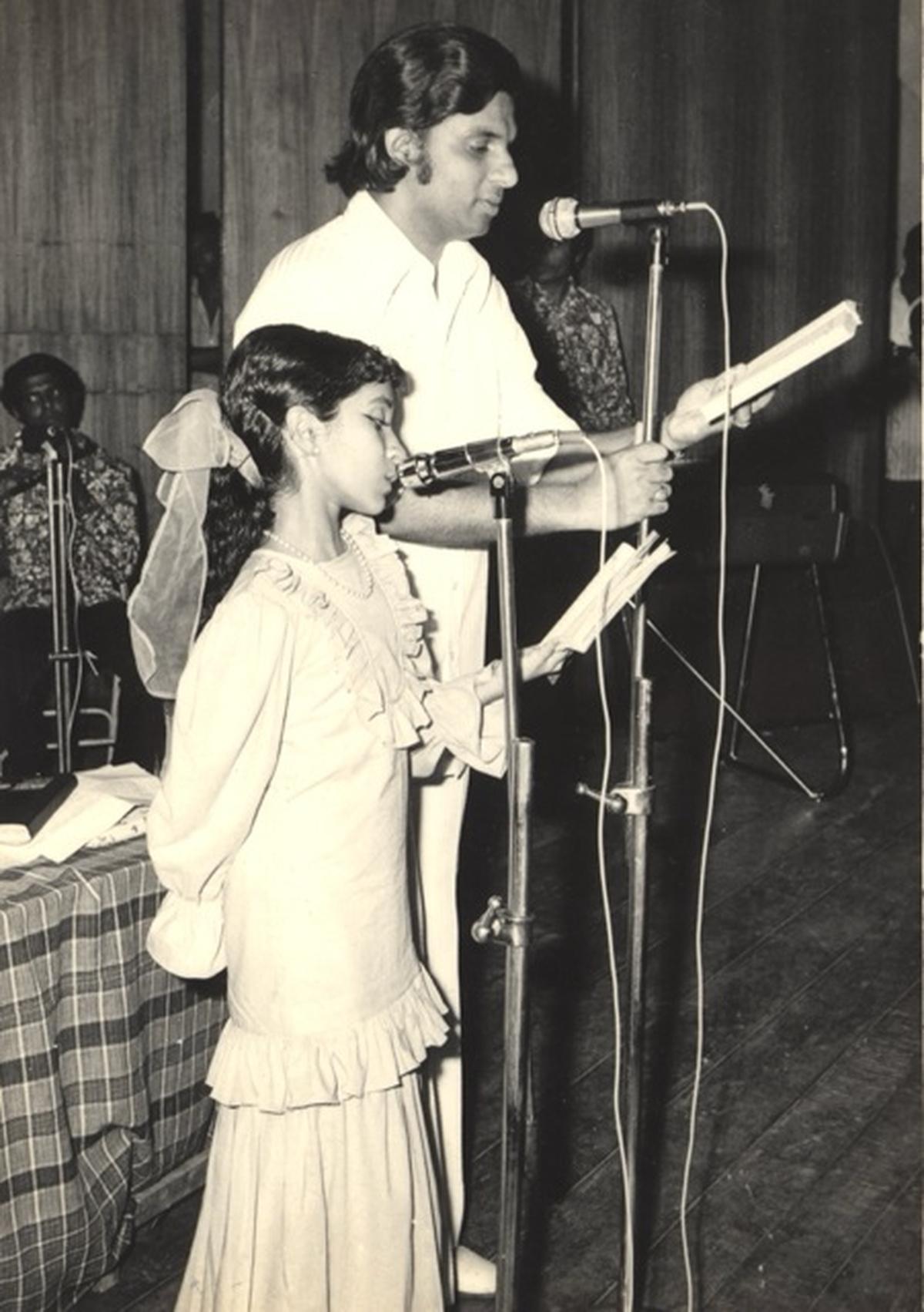 The young Sujatha sharing the stage with veteran singer K.J. Yesudas.