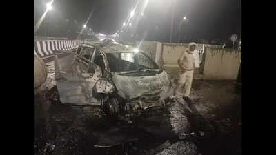 New Delhi: A taxi driver was charred to death and another critically injured after their car allegedly caught fire following a crash in northwest Delhi in the early hours of Sunday. Police claimed they were intoxicated and speeding when the incident occurred.According to police, a PCR call was received around 2am at Narela Industrial Area police station, reporting a car accident and fire near Jhanda Chowk, close to Hulambi Khurd village. When the police team reached the spot, they found the driver’s seat engulfed in flames with a man charred to death and another severely injured in the adjacent seat.Emergency responders immediately rushed the injured to a hospital in Narela. He remains in critical condition.The deceased was later identified as Vipender, 40, a resident of Puther village in Panipat, Haryana. His injured co-traveller, Jagbir, also aged 40, is from Ishrana village, Panipat. “Preliminary investigation suggests the two were travelling from Delhi to Panipat. Police believe the vehicle may have been speeding when it lost control and rammed into a cemented road barricade along the Outer Express Ring Road. The impact is believed to have triggered the fire, which quickly engulfed the vehicle’s front half,” a senior police officer said.Upon investigation, the officer said, “The injured man told police that they were under the influence of alcohol at the time of the accident. “Police said the two, who were cab drivers, had reportedly come to Rohini for a passenger pickup, possibly for a trip to Jaipur. However, for reasons that remain unclear, the pickup did not take place, and the men proceeded to their home district in Haryana when the crash occurred.“The exact sequence of events is under verification. We are checking if the fire started due to the impact or if there was a mechanical failure that led to the incident,” said the officer.Forensic teams have been called in to examine the scene, collect samples, and photograph the wreckage. An FIR is being prepared, and further investigation is underway.