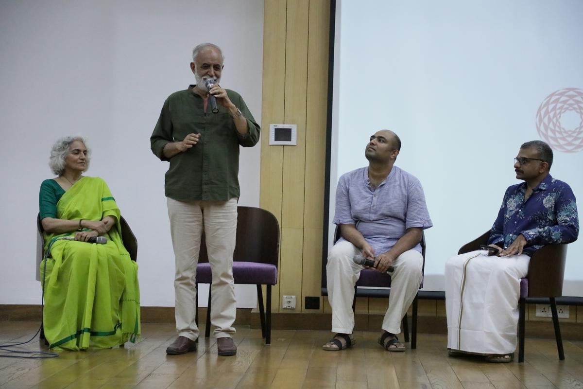 Nayanjot Lahiri, M.K. Raina, Naresh Keerthi and T.M. Krishna at the 2022 edict release event