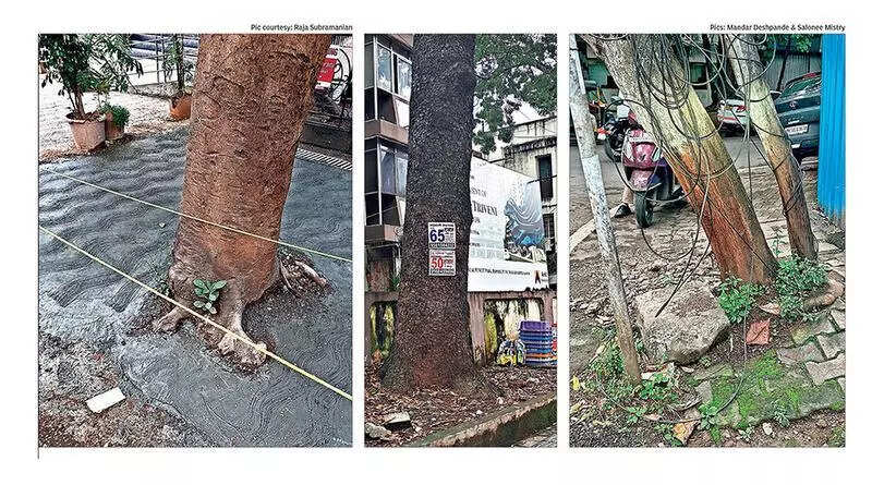 Raja Subramani’s mornings are incomplete without fresh air and wind in his hair as he rides his bicycle around Vimannagar, Lohegaon and nearby areas. The sight of slowly dying trees – disfigured with advertisements on their trunks and concrete at the roots – is the only gloomy aspect to an otherwise ideal start to his day.“I take photos and report to Pune Municipal Corporation (PMC) all instances of trees choked with concrete around the bark or posters stapled or pasted on them in the Vimannagar and Lohegaon areas. Sometimes, I spend time taking these down or making cracks in the concrete as these activities can affect even healthy trees and make them die a slow death,” said Subramani, a Vimannagar resident and IT professional.He isn’t alone. A growing tribe of environmentalists have pointed out that it is a tough life for trees in urban areas today. Their health and safety is constantly at risk and it is up to residents to safeguard and preserve them.Madhav Patil, president of non-government organisation Angholichi Goli (Bath Pill), said it is a common sight to see a tree with concrete at its base. “The National Green Tribunal (NGT) had directed in 2022 that there should be no concretisation within a one-metre radius of the base of a tree. This is to ensure they grow well and remain stable.” Another familiar sight is posters either stapled or stuck on the bark of a tree. “Many feel this doesn’t harm trees as the bark is thick, but that is far from the truth. To mitigate the harm humans cause trees, volunteers of Bath Pill walk around neighbourhoods and remove the nails, posters and staples from trees to give them a chance to heal and survive,” Patil added. Residents complain, but no one listensSeveral residents said that though they have repeatedly taken pictures of concrete around trees, lights strung up on them and posters on trunks to complain to the civic bodies, nothing has changed on the ground.Binod Pillai, a businessman and resident of Vimannagar, said, “I have complained multiple times and only a ticket gets generated. After a few days, even that is closed without any resolution. Authorities must be more vigilant about this, and yet, no one does anything. Sometimes, I try to explain the harmful effects to shopowners who have hung lights on trunks or nailed hoardings on the trees outside their shops. While some listen, most argue with me and don’t take them off.“Patil agreed: “When we make a complaint about those who have stuck advertisements on tree barks, it is easy to find and impose a fine on them as most of them have contact numbers. Yet, nothing is done.”Subramani had a slightly different and upbeat take – he said that PMC officials have often acted on his complaints and removed concrete from around trees. “But the problem lies in the advertisements and lights on trees. One department passes it on to the other as they are not aware of the jurisdiction it falls under. As a result, the tree officer does not get the ticket at all.” “For 15-20 days, nothing happens. Then, officials say they have registered FIRs against the rule breakers, but there’s no way to know for sure,” Subramani added.Improper pruning also a big problemFor the last 25 years, tree lover and Wakad resident Akanksha Pandey has made it her mission to stop citizens and authorities from cutting down in an unscientific manner.“There has to be some logic behind cutting down or trimming a tree. There was a big tree in our society near a boundary wall that we shared with another building. Many of its branches grew into the neighbouring compound. Not wanting to deal with an accident in the future, our neighbours cut the part of the tree that was on their side. But the tree lost its balance, and became heavy on our side. Eventually, it could not bear the weight and fell down, damaging the play area in my society,” Pandey said.Whenever the IT professional sees anyone trying to cut trees or trim them improperly, she tries to initiate a conversation and talk to them about what they are doing and why it is wrong. “Many senior citizens feel that cutting just one tree won’t make a difference. It takes some time to explain to them that every tree counts. Some understand and others ask me to mind my own business, but I do what I can,” she added.Year-round maintenance is sorely lackingBotanist Shrikant Ingalhalikar said that while posters and lights cause harm to trees, the greater threat is from lack of maintenance through the year. “Posters and lights do not cause direct harm to the trees. But, it is unfair and ugly to use trees as poles and obscure their natural beauty. Driving nails is more an act of cruelty than one that causes harm,” Ingalhalikar said.“Concrete around the stem prevents roots from breathing, and deprives the tree of water and nutrients. It also does not let the rootsgrow into the buttresses. This makes them weak and leads to their collapse during rains and storms. In case of such accidents, the blame is pinned on the exotic origin of the tree, which is wrong,” he added. Ingalhalikar also urged citizens to take initiative and step up their activities to protect trees rather than expecting the Pune Municipal Corporation or the Pimpri Chinchwad Municipal Corporation to do it. Civic bodies will keep citing lack of manpower, resources and funds to get away with not doing their job, he added.Official SaysWe have started a tree van service, which is essentially tasked with roaming around the city and taking out posters, lights, nails or hoardings from trees. There is a lot of inspection that happens at the ward office level for these issues as well. Many times, those found to be involved in such activities are fined — Ashok Ghorpade | Chief Garden Superintendent, PMC____________________________________Urban Greening Guidelines, 2014Source: Union Ministry of Urban DevelopmentSpace around trees: A minimum area of 1.25m x 1.25m should be left uncemen
