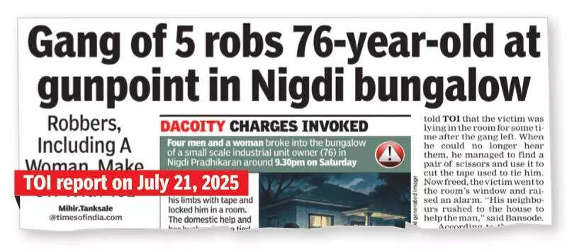 Pune: In a relief to two elderly women robbed of gold ornaments worth Rs8.5 lakh by three men on Sept 7, the Pimpri Chinchwad crime branch arrested the trio on Thursday and recovered the entire booty before they could sell it.The incident occurred when a 76-year-old woman of Andheri in Mumbai and her younger sister (72) of Bengaluru wanted to go from Wakad to Khopoli and were offered a lift by the three men. The women lodged a complaint with the Hinjewadi police on Sept 11.Senior police inspector Arvind Pawar led the crime branch team which traced the trio to Ravet. The men were identified as Abasaheb Madane (35) of Dehu Road, Kailas Tonape (32) of Dighi and Vaibhat Suryatal (30) of Ravet. “The entire jewellery was recovered and Madane’s car used in the crime seized,” he told TOI.Madane faces a case of cheating registered with the Pune Rural police and is a real estate agent. Suryatal worked in an IT company, but had been unemployed for the last few months. Tonape runs a small construction-related business, Pawar said, adding: “The three friends needed money and robbed the women on spotting an opportunity.”The officer said that in the first week of Sept, the two women went to Indapur to meet another sister. On Sept 7, they took a bus from Indapur to Swargate and another to reach Khopoli to meet their brother. The conductor requested them to alight at Wakad and take another bus at 2.30 pm, since his vehicle was going via the Pune-Mumbai expressway.“The women were waiting for the bus, when the trio noticed them. They told the women they were headed to Khopoli and offered a lift in their car,” he said.The officer further said the men drove the women around for two hours and then went to Katraj tunnel. They used a knife to threaten the elderly women and snatched their gold jewellery worth Rs8.5 lakh. “The trio left the women inside the tunnel and fled. The women managed to walk out of the tunnel and were told they were in Katraj. A car driver dropped them to a bus stop and they took a bus to Khopoli,” he said.The women told the police that the trio were in a red sedan. The police checked all red cars near the crime scene on Sept 7. “We zeroed in on one car and found its registration number was fake. We checked footage of over 100 CCTV cameras. We took the trio into custody on a tip-off. They were handed over to Hinjewadi police for further investigation,” Pawar added.