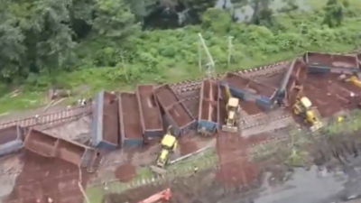 NEW DELHI: Two goods trains derailed on Saturday in the Chandil area of Saraikela Kharsawa district in Jharkhand, under the Adra Division of South Eastern Railway.Clearance operations are currently underway to restore normal train movement on the affected route.No casualties have been reported so far.