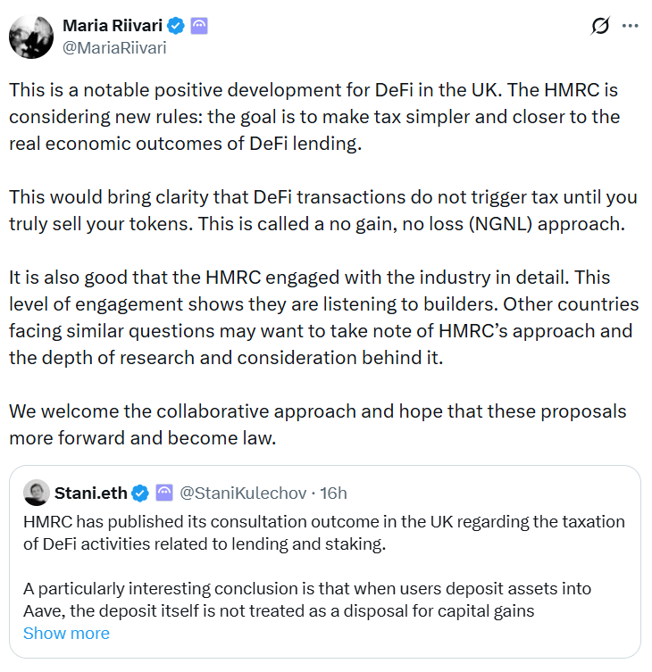 The UK has floated a new tax framework that eases the burden on decentralized finance (DeFi) users, with deferred capital gains taxes on crypto lending and liquidity pool users until the underlying token is sold, which the local industry has welcomed.