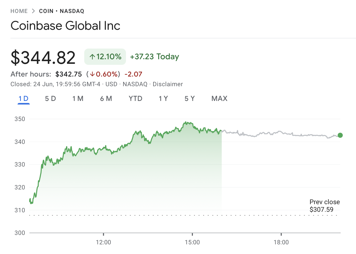 Coinbase closed the trading day up 12.10%. Meanwhile, crypto mining firm Riot Platforms spiked 8.09%, Marathon Digital rose 4.94%, and Michael Saylor’s Strategy (MSTR) gained 2.68%, according to Google Finance data.