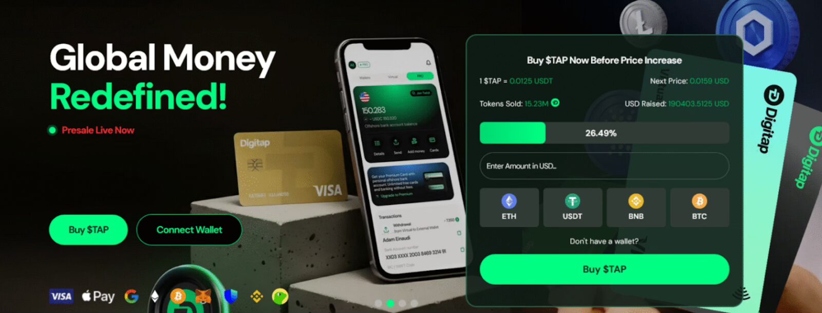It is already in presale and is planning to change cross-border finance. It has VISA-backed Digitap cards for online payments in crypto or fiat within seconds.