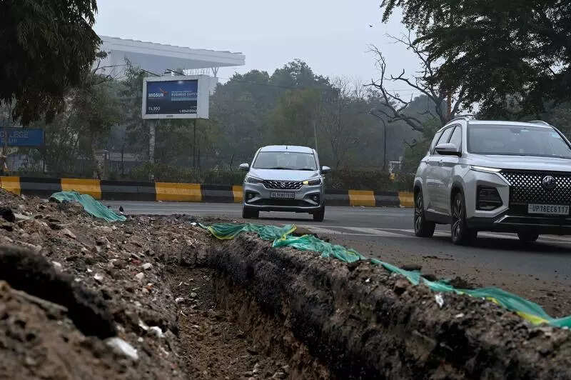 New Delhi: Deep pits alongside busy roads; men, women and children jumping across dug up stretches; iron bars jutting out of open ditches – across the city, unsecured and unmarked construction zones continue to pose risks to motorists and pedestrians.Earlier this month, a 27-year-old software engineer drowned after his car fell into a waterlogged under-construction site in Noida.A TOI spot check in Delhi reveals there are several unsecured construction sites that leave citizens vulnerable to similar accidents. At Lodhi Road, heaps of excavated soil were found piled along the road median, marked only by loose green netting lying on the ground. The uneven mound narrows the carriageway and offers little visual warning to approaching vehicles and pedestrians, particularly during peak traffic hours.At Greater Kailash-I, a deep ditch running parallel to the road was found partially covered with green plastic sheets, with water accumulating along the edges. The covering sagges as traffic continued to move dangerously close to the pit. In the absence of solid barricades, reflectors or warning lights, the excavation blends into the road surface during low visibility, increasing the risk of vehicles skidding or veering into it.At Sarai Kale Khan, a wide, water-filled pit dug to lay pipelines was seen barely fenced off with metal sheets and netting. Located along a busy arterial road, the excavation exposed a large cavity filled with muddy water, while two-wheelers and cars passed just inches away. The lack of proper barricading and signage makes the site especially hazardous at night or during rainfall.Several locations also had deep and elongated potholes along extended stretches of road without any covers. While green plastic sheets were placed at a few sites, they were loosely fixed and appeared inadequate to prevent vehicles or pedestrians from falling in. In the absence of proper lighting, cones or metal barricades, these temporary arrangements offer little protection or warning.In many cases, construction work has remained incomplete for weeks due to construction bans, with temporary coverings shifting due to traffic movement, rain or wind, leaving pits exposed.Near the Pragati Maidan railway line, a black pipeline was placed next to an open drain alongside the busy road. Blue utility pipes were laid parallel to it and fixed along the edge of the uncovered drain. Traffic moved slowly amid parked cars, stacked construction material and a temporary blue structure, indicating ongoing civic or repair work.The Public Works Department did not respond to queries regarding the lack of safety measures.A traffic police official, who refused to be named, said proper barricading and safety arrangements have to be made by the agencies carrying out the work. He added that once the work is completed, all markings and obstructions must be removed and the road restored to its original condition to ensure public safety and avoid traffic congestion.