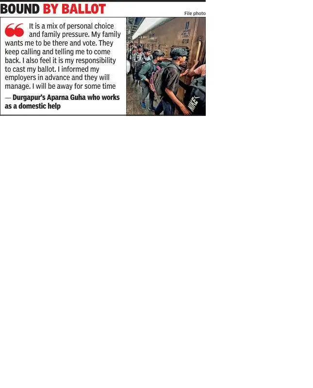 Pune: The informal workforce in the city is thinning out as migrant workers from West Bengal head home to celebrate Poila Boishak on April 14 and vote in the state’s upcoming elections later in the month.The typically short festive visit for the Bengali New Year has turned into a longer, more purposeful journey, as civic duty takes precedence alongside tradition.The impact is visible across households and restaurants. Domestic helps, cooks, waiters and kitchen staff are taking extended leave, planning to return only after voting. It means staying back in West Bengal through at least one phase of polling and stretching their absence in Pune to several weeks.A waiter at a restaurant in Koregaon Park, Gopal Dutta, said, “I have to go and vote, because my parents are forcing me to come. Rumours and WhatsApp forwards have left them worried. Thankfully, getting leave from my employer is not that tough because I am a long-time employee. They have to let us go to cast our vote.”Restaurant owners and resident associations said the shift is being felt already. Ganesh Shetty, president of the Pune Restaurants and Hoteliers Association, estimated that a noticeable portion of the workforce has temporarily exited the city. “There are a lot of rumours regarding SIR that people don’t understand and panic. About 10%-15% of our staff has gone back to vote. Some of them have not even taken their pay, since they know it will be given on their return,” he said.However, for workers, the decision is less about inconvenience and more about obligation — familial and civic. Biswajit Mandal of Midnapur works as cook in Pune for the last six years. He said he had planned his leave weeks in advance. “Poila Boishak is important, but voting is equally so. I will go home on April 12, spend time with my family and stay back till my voting day. Work will be there when I return, but voting cannot be missed,” he said.Durgapur’s Aparna Guha, who works as a domestic help, said it was a mix of personal choice and family pressure. “My family wants me to be there and vote. They keep calling and telling me to come back. I also feel it is my responsibility to vote. I informed my employers in advance and they will manage. I will be away for some time,” she said.The migration has also altered community plans within Pune. Arun Chakraborty, who runs the Facebook page Bengalis in Pune, said that Poila Boishak celebrations will be subdued this year. “We have not planned anything, because many members, especially the senior ones, are going to West Bengal to vote. We will collaborate with other Bengali associations to have some programmes for those who are in the city. People are more enthusiastic to go and vote this time. They completed the SIR formalities earlier and are now going to vote. Many who didn’t manage to get train tickets have paid extra to go by flight,” he said.In Pune, the temporary absence means rearranged schedules, limited menus and households stepping in to fill the gaps. As one restaurant manager put it, this is a disruption most are willing to accommodate. Even the busiest kitchens can pause when democracy calls.