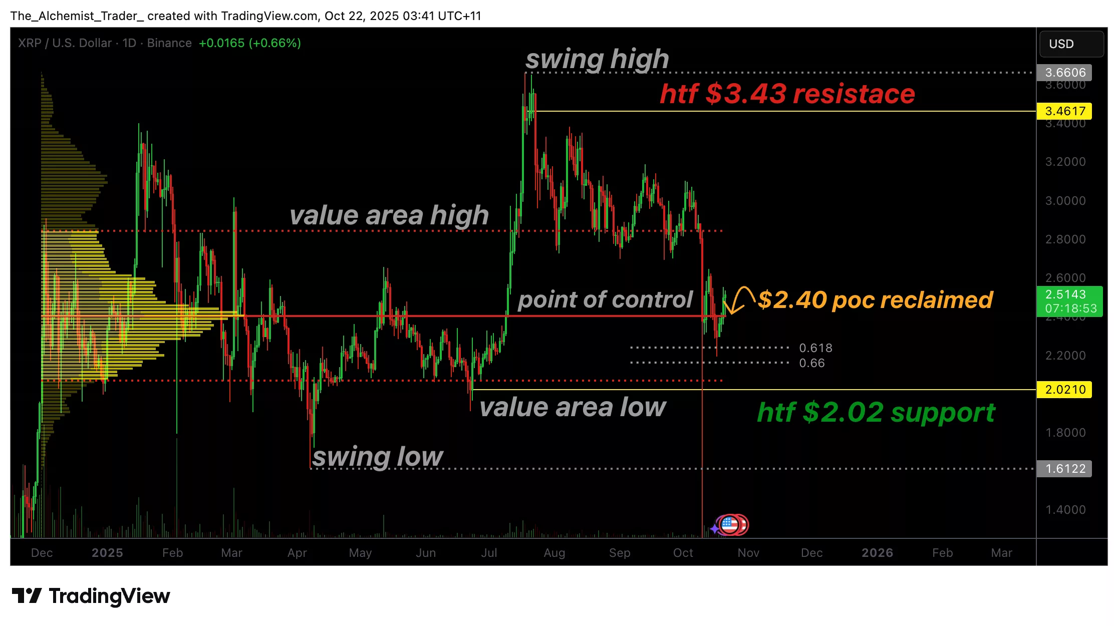 - Key Resistance Reclaimed: XRP has moved back above the $2.40 Point of Control, a major volume-based resistance.