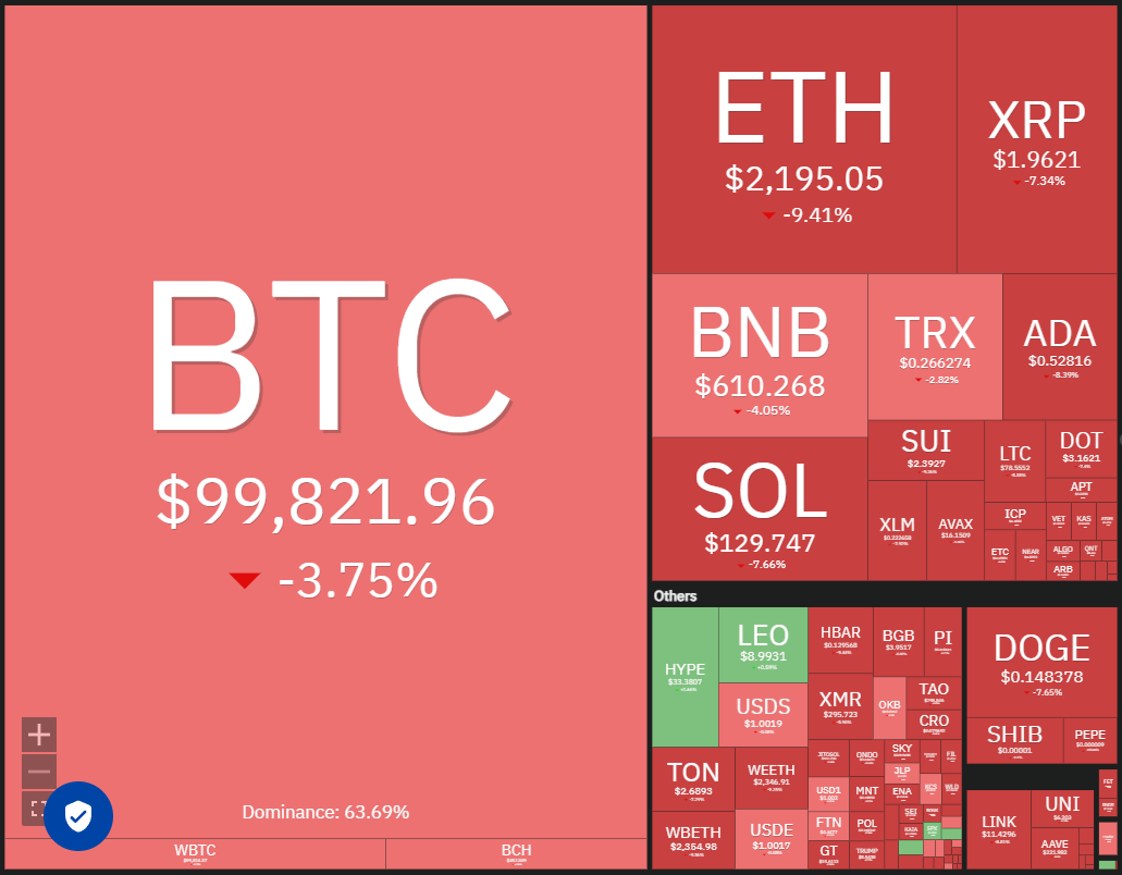 Bitcoin fell below the $100,000 support on Sunday, but a rebound could depend on how US stock futures open.