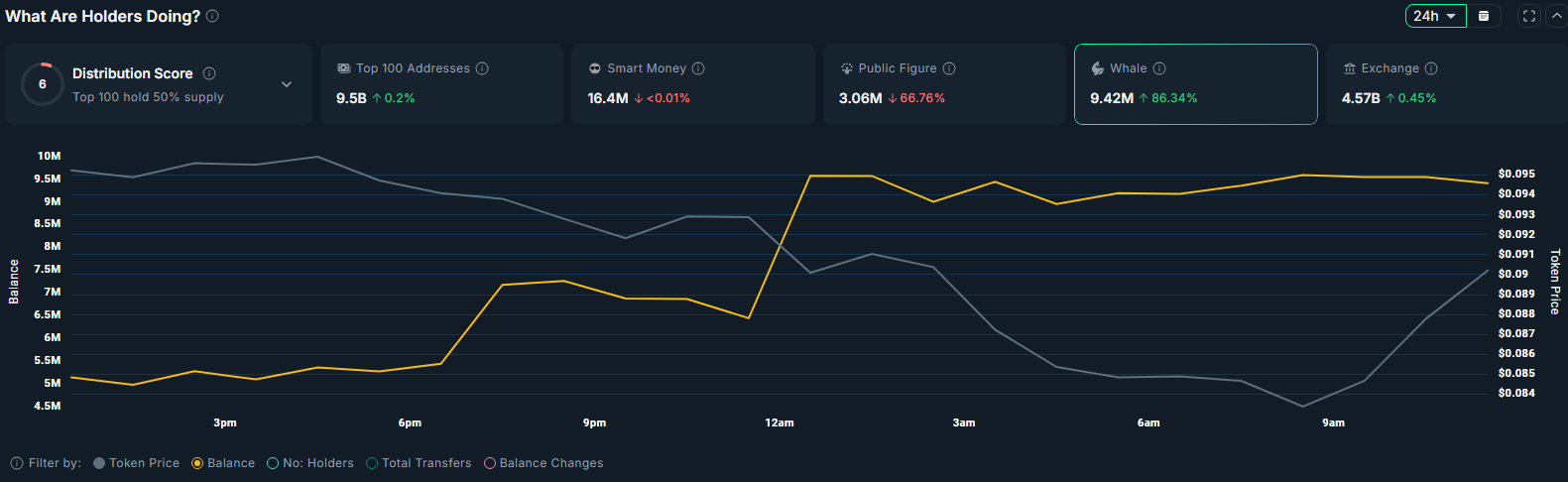 Whale wallets have significantly increased their ZORA holdings in the past 24 hours.